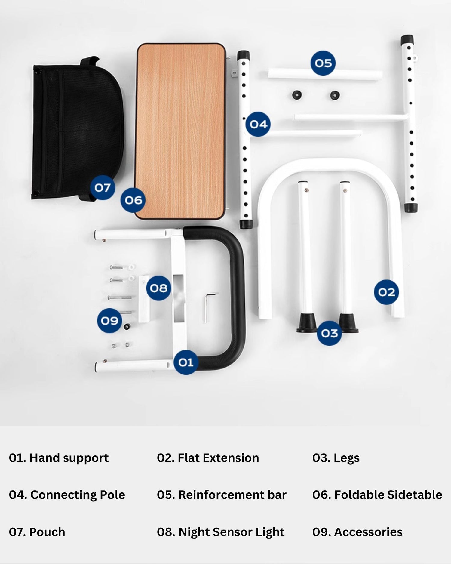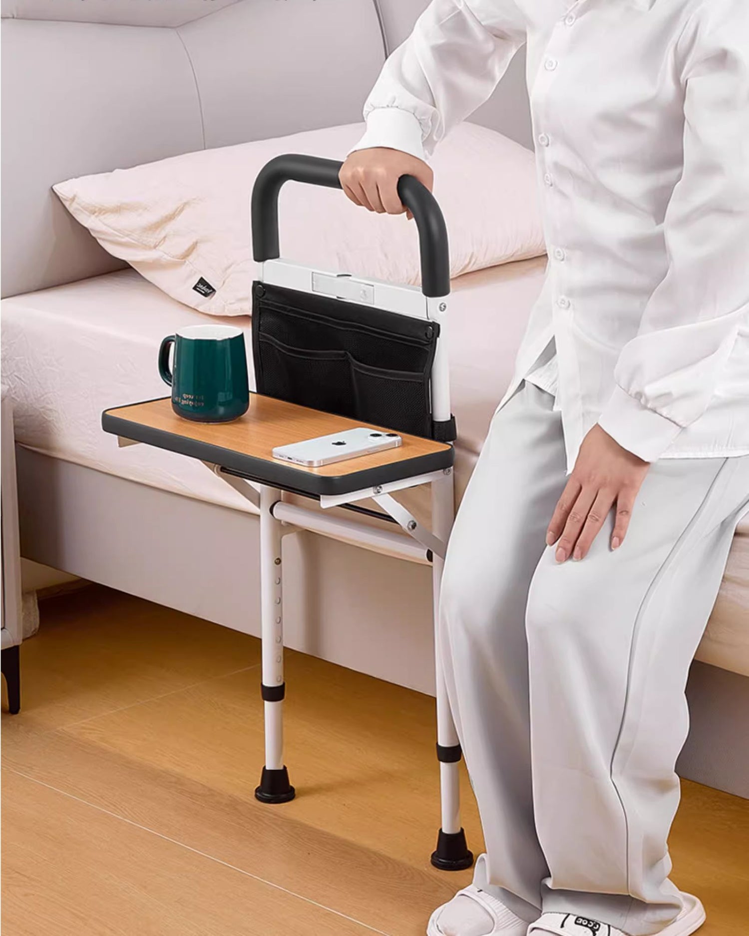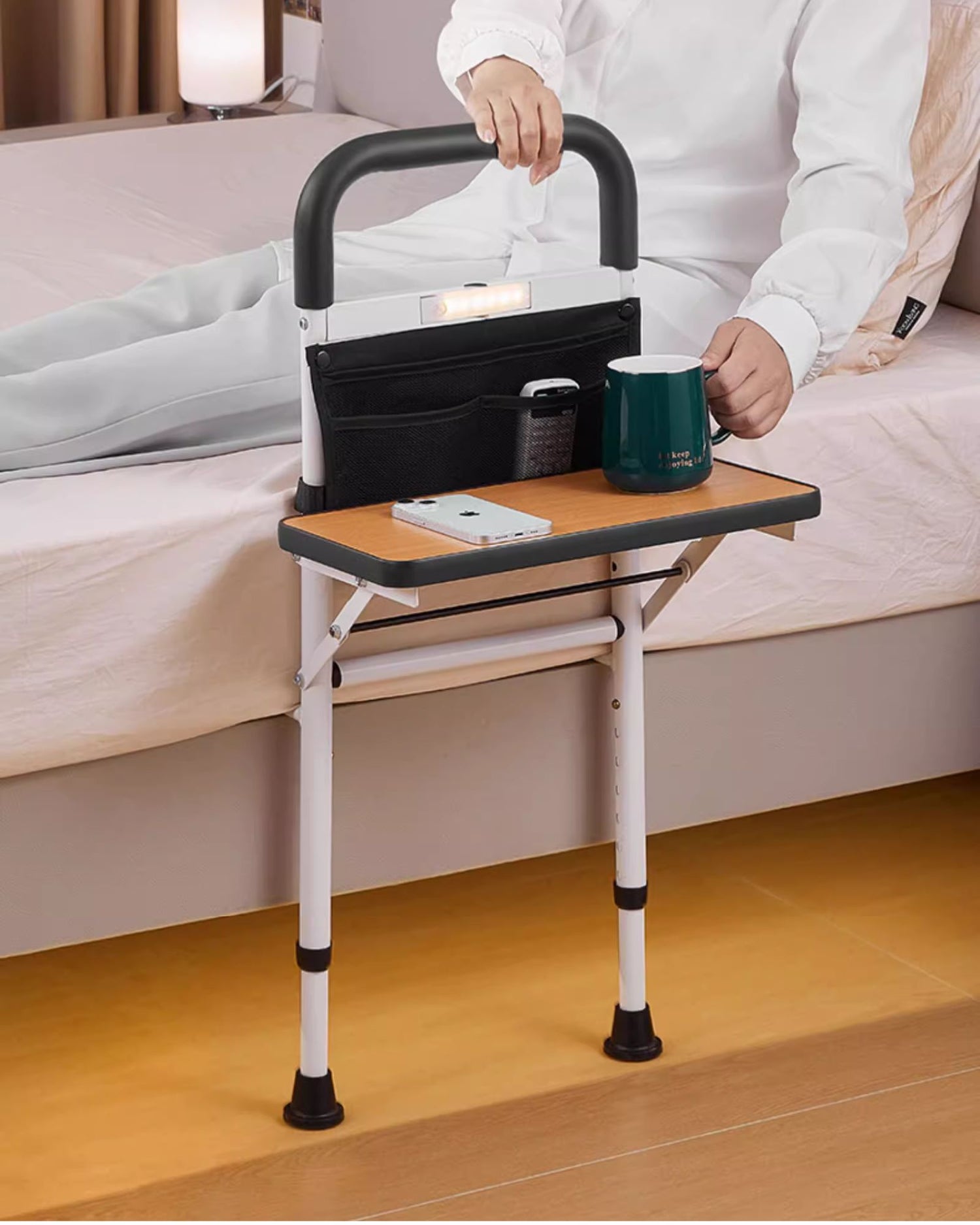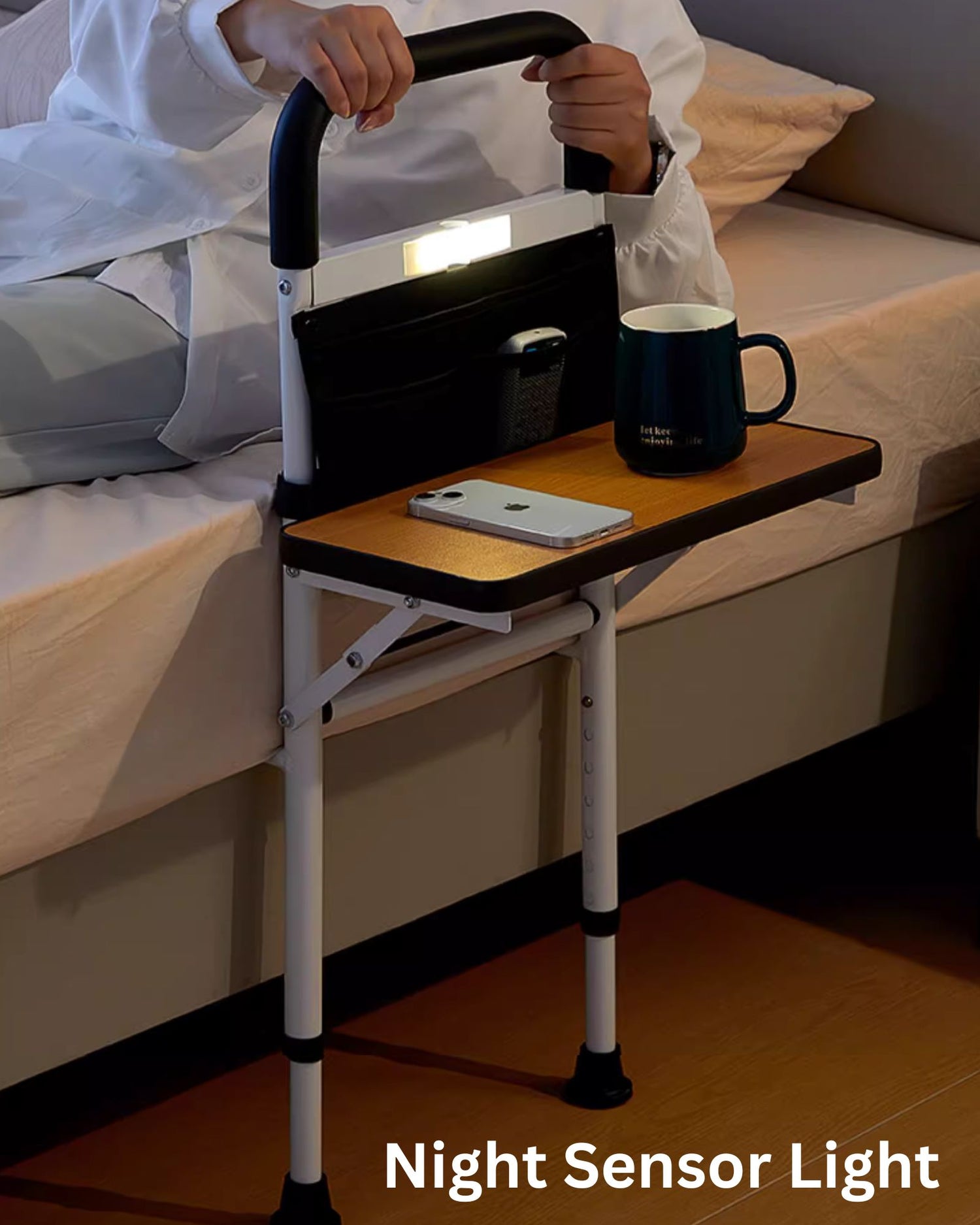 SilverGrip™ Bedside Support with Foldable SideTable, Sensor Light and Ground Support