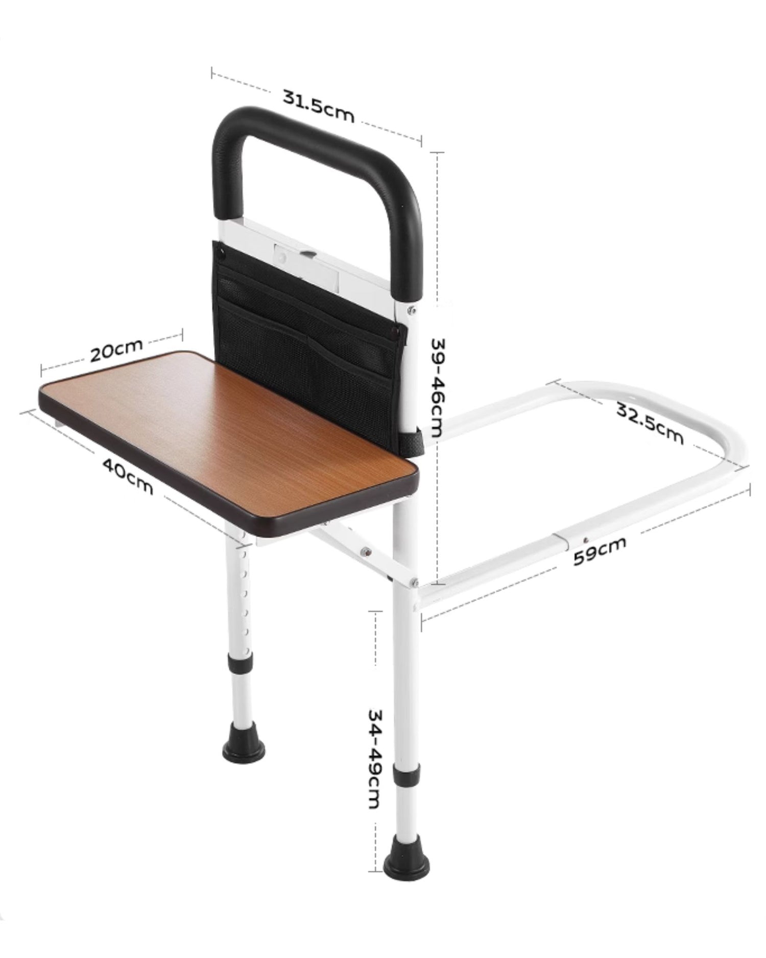 "Finally, a bedside support that thinks of everything! The motion sensor light is brilliant - no more fumbling for switches during midnight bathroom trips. The side table is perfect for my water, glasses, and medications. Installation was a breeze, and those ground support legs make it rock solid. My son says the sensor light gives him peace of mind since I live alone."